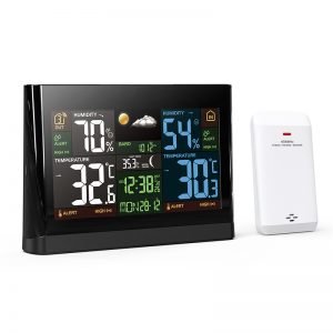 - Outdoor TEMP: color auto-changed by outdoor temperatureMax & Min record for thermo-hygro readings